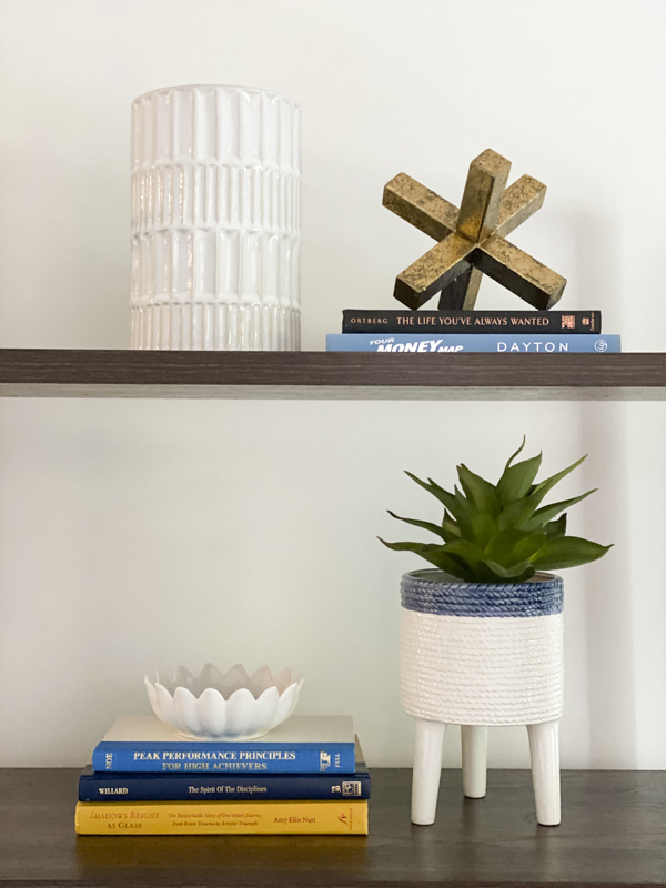 Plants are always a good idea for shelves. Did you check out my Pothos plant blog post from yesterday?