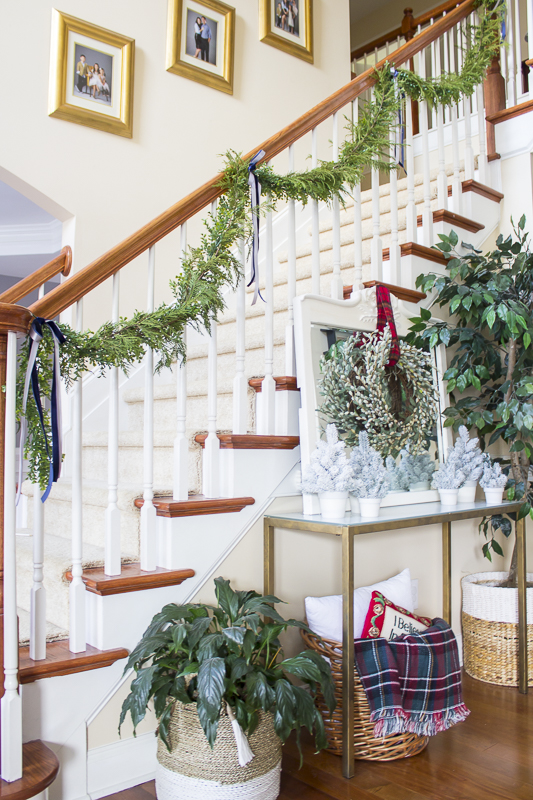 Every year, I add my DIY Christmas garland to my mantle and front door. In the past, I’ve even hung it on our staircase. This year, I took a break from the stairs but I added them both to the living room mantle and front entrance. It just adds that nice Christmas touch and it’s very easy to do.