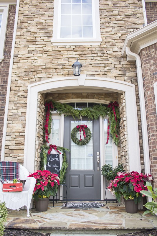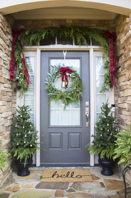 For my front entrance, I have picture hanging hooks that I keep up all year long. I attach the faux garland first on those hooks and start to add the fresh greenery. I also add the floral wire to keep it nice and sturdy. Here’s a simple video that I made on my Instagram stories. I compiled them and added it to my youtube.