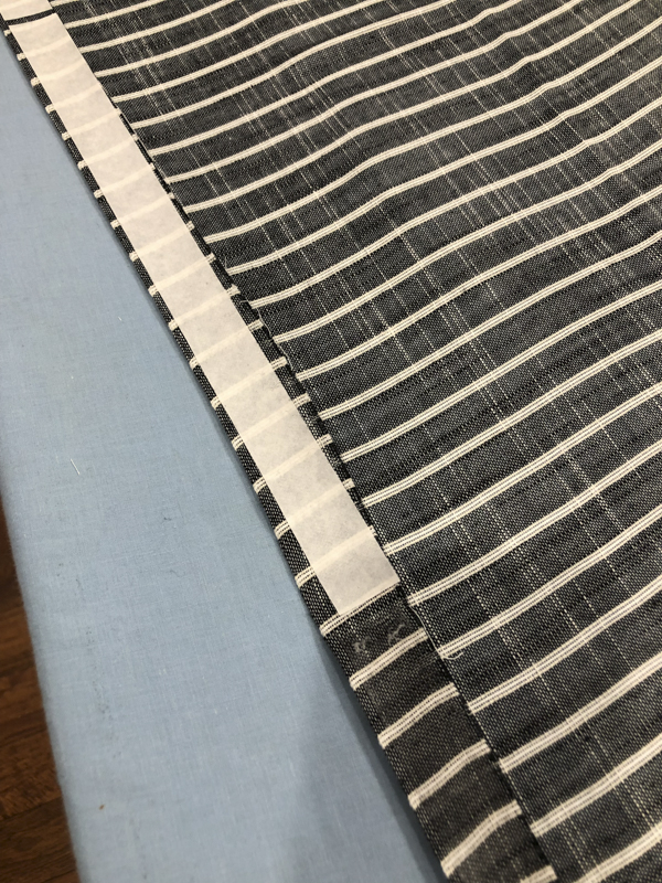 Fold over the edge by about an inch and iron it. Place the adhesive with the white tape facing up and iron over it. Let it cool before removing the sticker. Fold over that edge once more and iron again. The sticky side will adhere once you iron the edge and your hem is set!