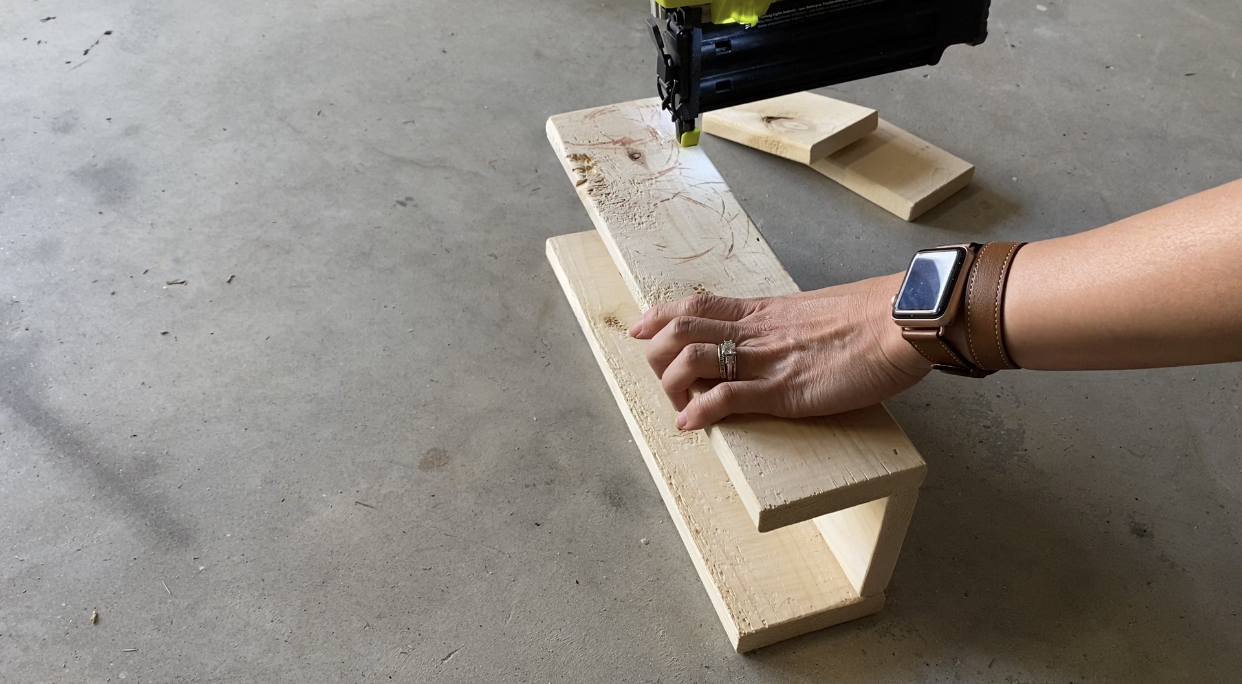Cut three pieces of wood to the same length, sand the cut edges and use a brad nailer to attach the sides to the bottom.