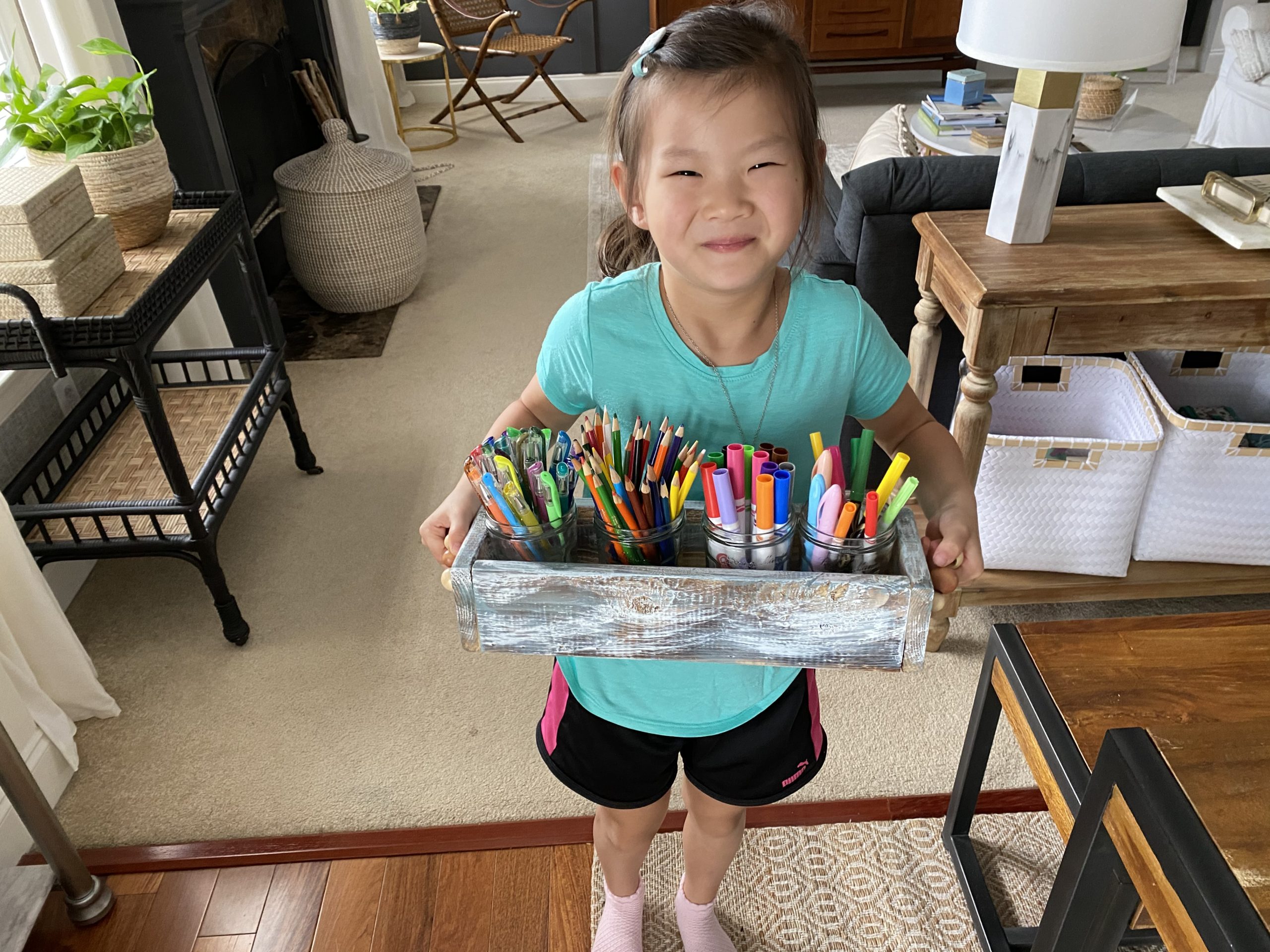 It’s easy for Emmy to carry around and holds all her necessary art supplies. The best part is that we made it with everything we had on hand. This was the perfect quarantine project for us.