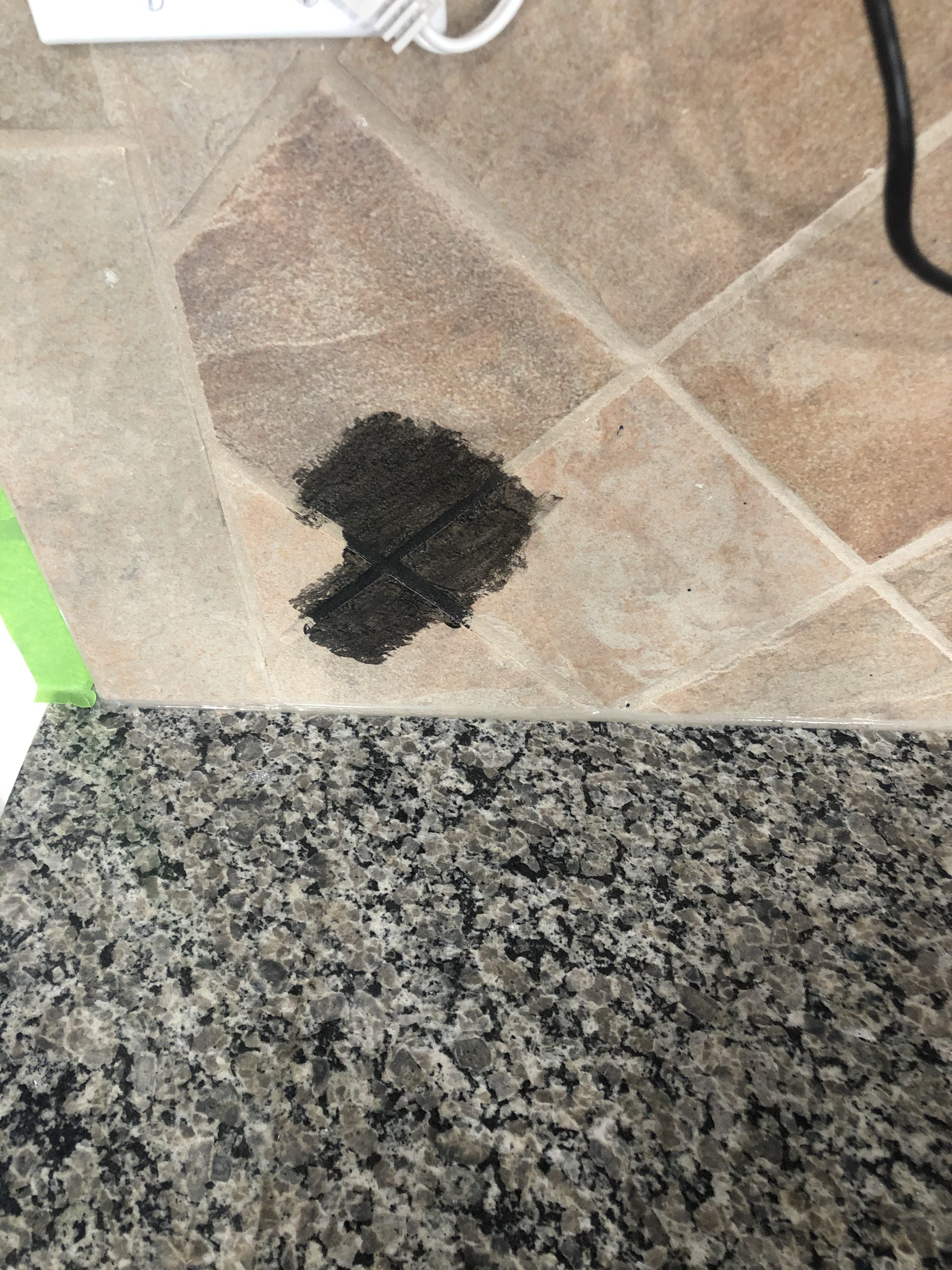 I went with Colonial Black paint in their Curb Appeal line and I went right to work. This project literally only took a few hours from prep to finish. One thing I suggest doing first is to sample the paint on one small area of your stone tile. I did this on my office desk tile where we always keep it covered with our file box holder.