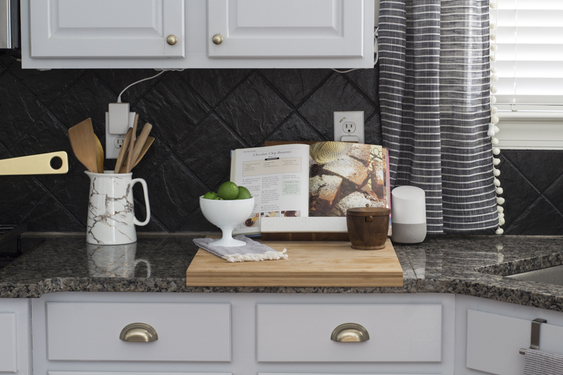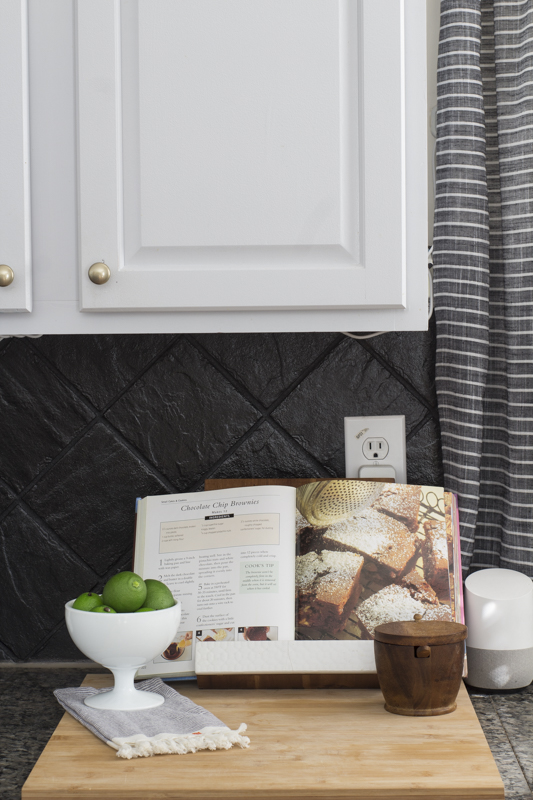 A simple weekend project included our DIY painted stone backsplash.