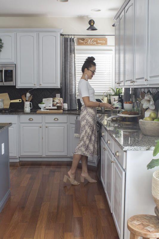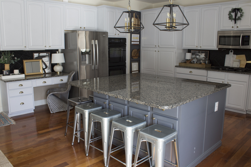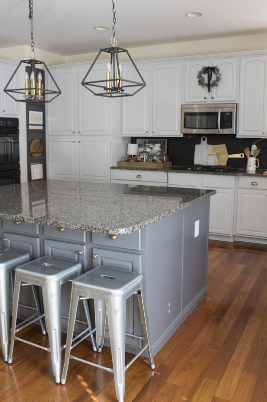One of my first big projects was painting our cabinets. That job alone took over 2 weeks and I was still learning what it meant to do DIY projects. It was a huge project and one that really made the biggest difference in our kitchen. It brightens our space so much especially with the dark hardwood floors and granite counter tops.
