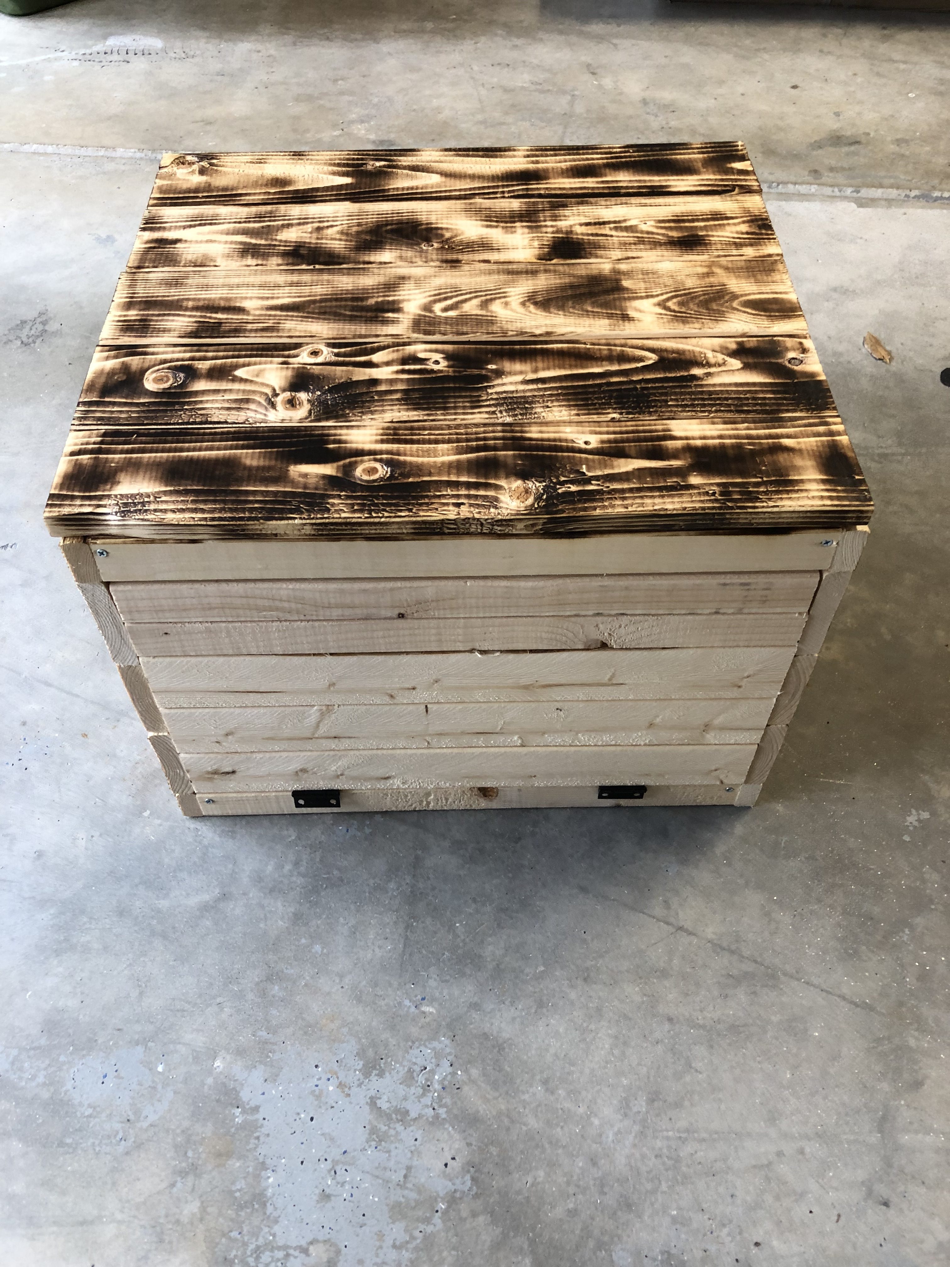 I am so proud of this project. First of all, I couldn’t really find ideas on building something that would hide a printer. Second, I love that this actually looks like an old crate. I used the Bernzomatic TS3500 multi-use torch to create the aged, antique grains on the wood and it actually looks quite old.