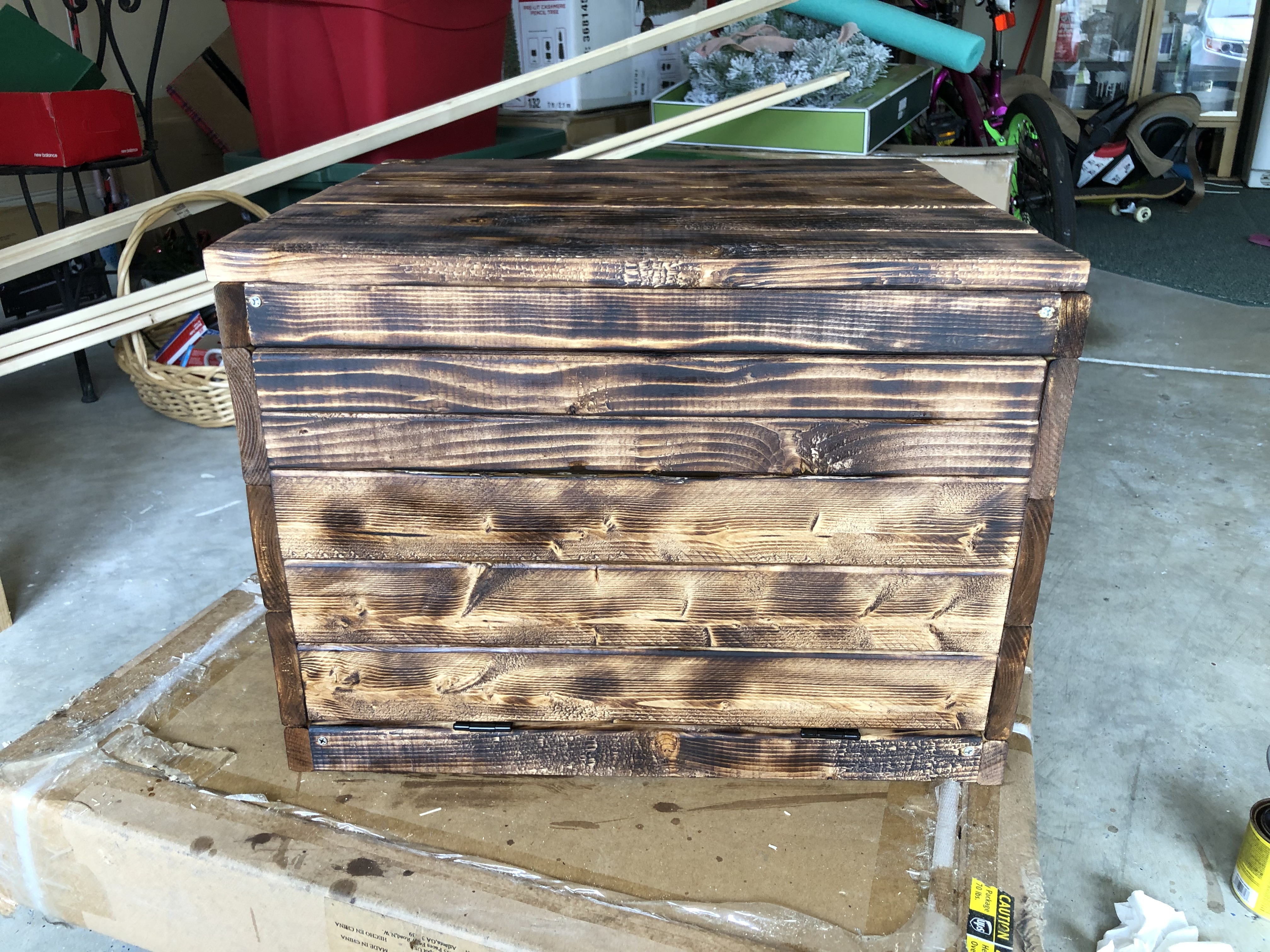 The wood looks absolutely beautiful and I can’t believe it was made from inexpensive furring boards. I love how the torch added so much depth and character to this printer box.