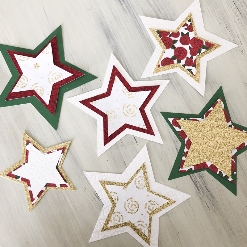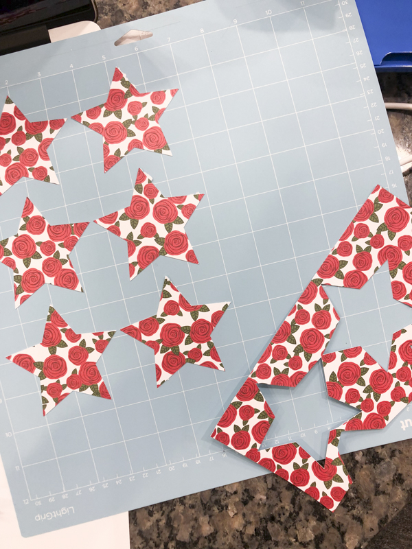 The Cricut already has templates set so I just made different size stars on my computer and had the machine cut out a bunch on an assortment of cardstock.