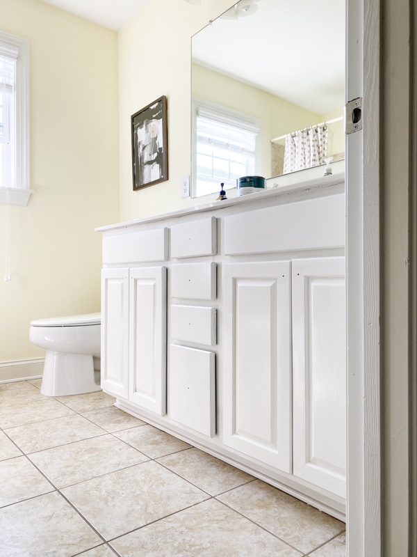 I think JJ is thrilled! I love that a simple DIY project of painting your cabinets can completely elevate the overall look of your bathroom.