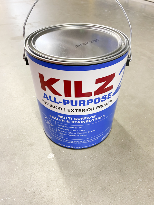 I used the multi-surface sealer and stain blocker. This is the same primer I used to successfully paint my kitchen cabinets. This particular primer blocks medium stains including minor water stains, rust, grease, ink, pencil and felt marker. It’s created to help lessen the number of coats of paint required. It also works with oil and water-based paints.