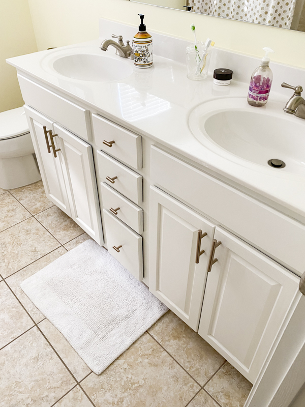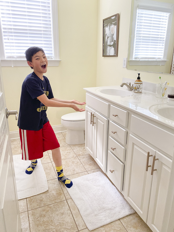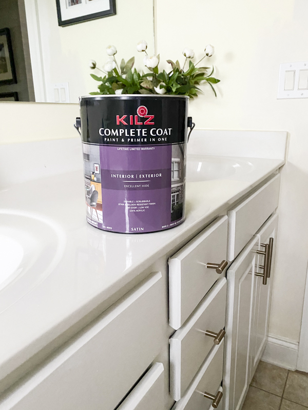 Years ago, I painted my kitchen cabinets. It was a huge DIY project but it gave our kitchen a dramatic transformation. I used KILZ® Primer then and I used it again for my kids’ bathroom cabinets. If you have been looking to update your bathroom, painting your cabinets is the best way to give it an inexpensive and beautiful refresh.