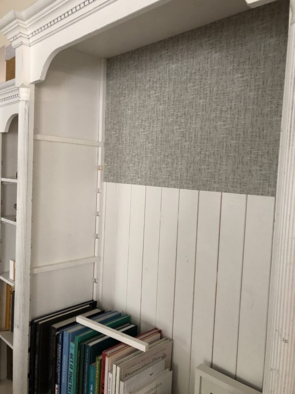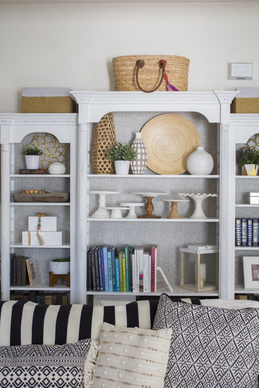The options are endless with this if you decide to apply this to the back of your bookshelf. I love the texture as it adds some dimension but still provides a clean transitional look. I didn’t want to do anything too crazy since it would compete with our main paneled wall.