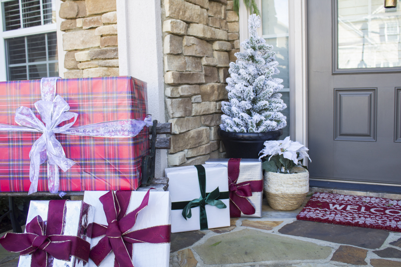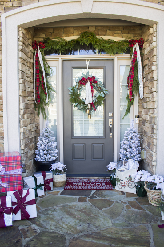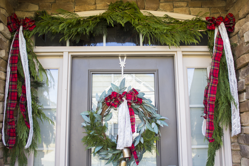 When it comes to my front door, I tend to gravitate towards classic colors. Red, green and white will never go out of style and throw in some plaid, and it’s perfect. Let’s just say I about froze my limbs off when I was shooting my front porch. This GA girl CAN NOT deal with cold!