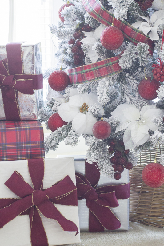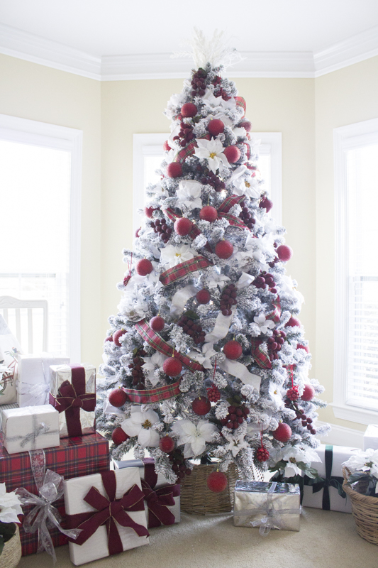 Our main flocked tree is also from King of Christmas and I carried the classic colors into our piano room as well.