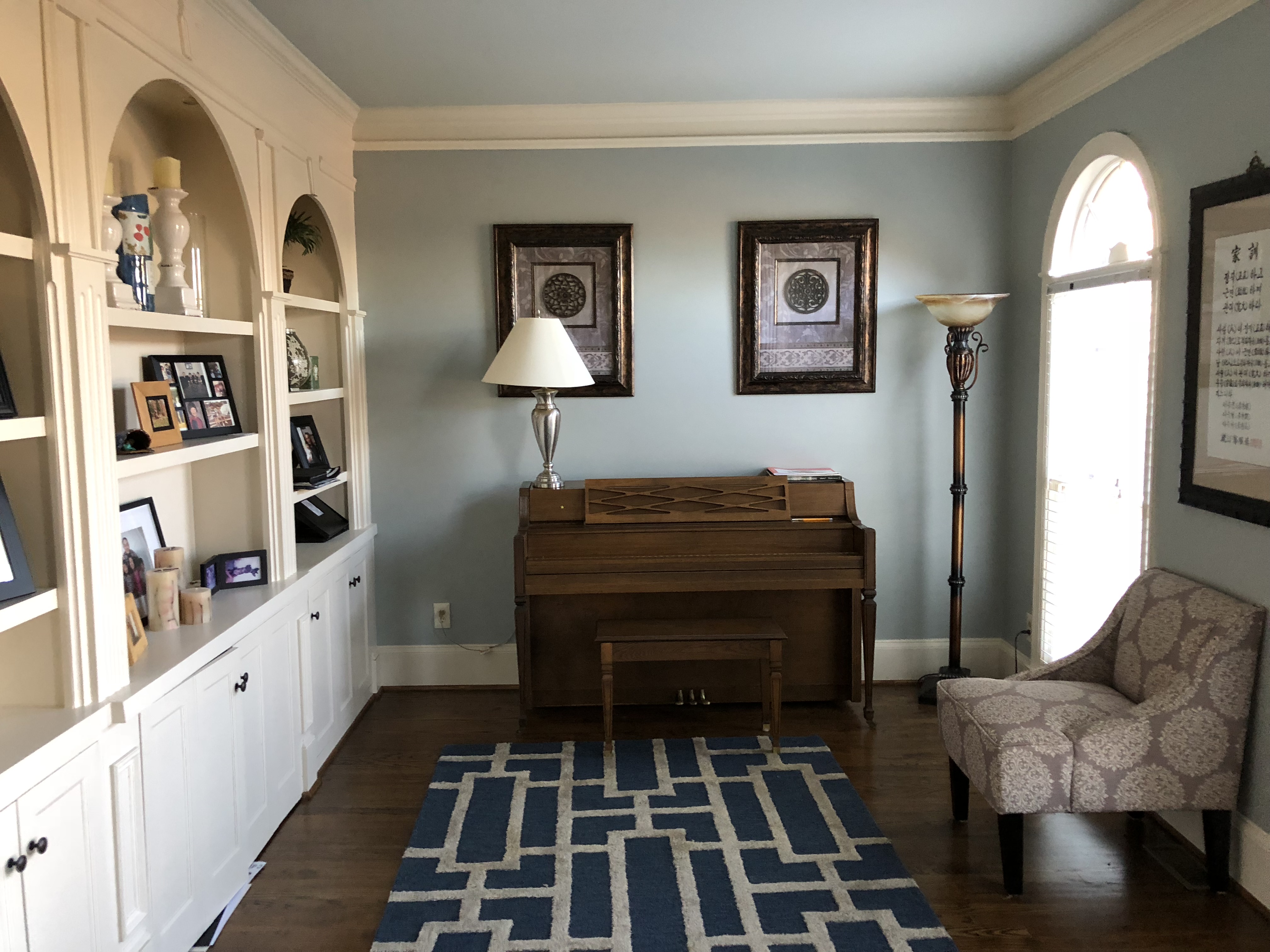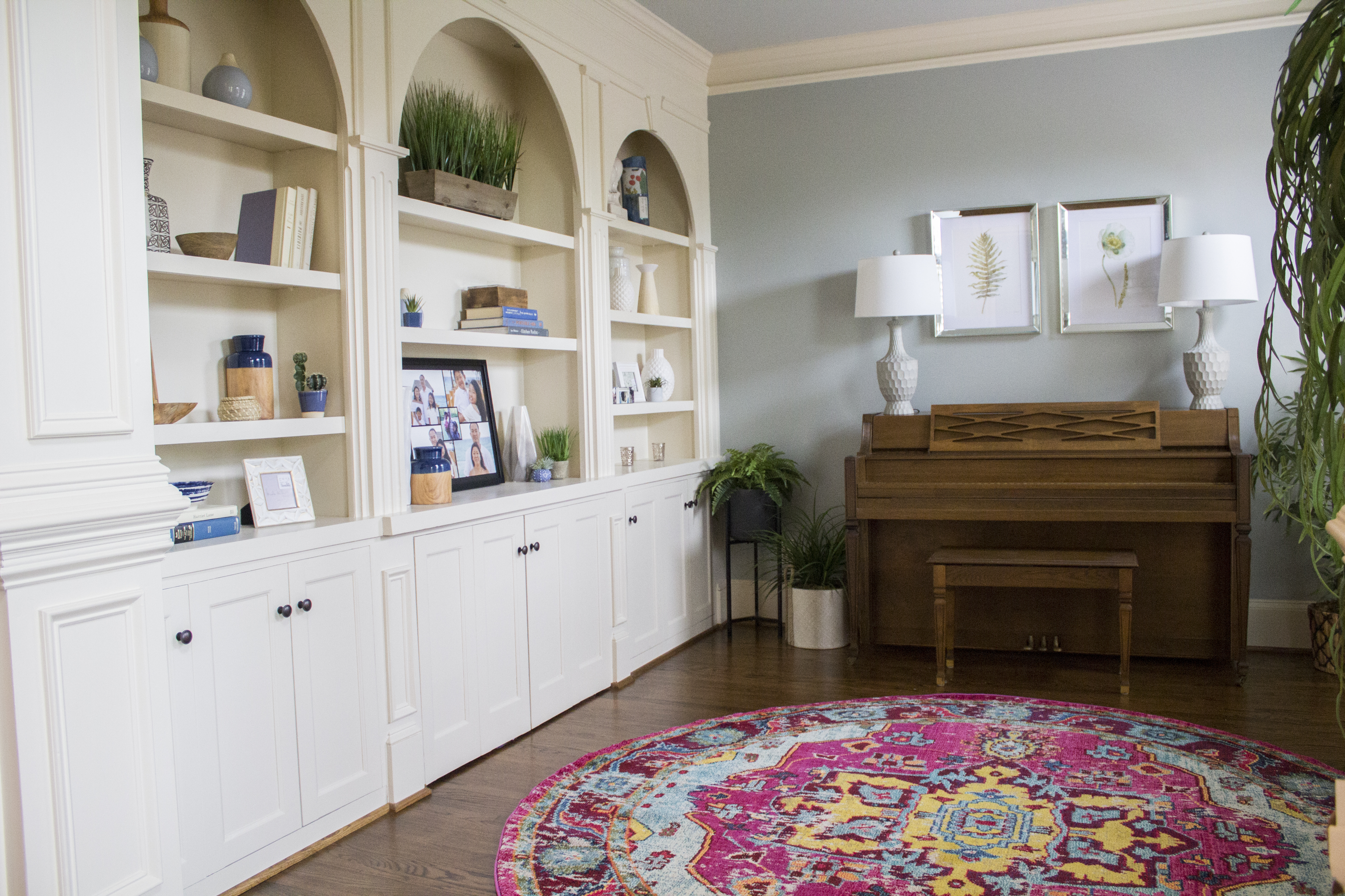 Earlier this year, I worked on a really sweet family’s house on updating some of the spaces in their home. I shared their modern farmhouse family room a while back but I also had the opportunity to work on their piano room and a few other spaces in their beautiful home. This is an example of how you can make your room shine with a pop of color.