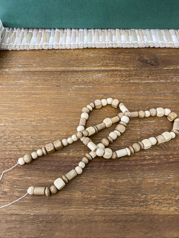 I strung the beads through some jewelry stretch cord I already had on hand. Just be sure to make it long enough for your preference. Tie the ends at least a few times.