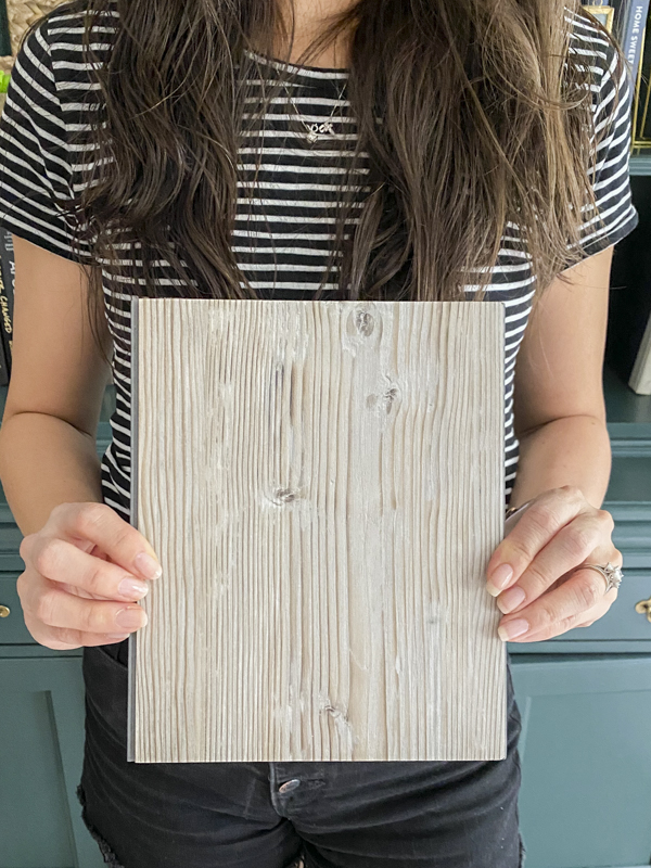 After looking at the selection, I chose the >Highland Spring Flooring. The luxury vinyl mimics the look and feel of real hardwood. However, it has waterproof properties that make it invincible. It also has beautiful cool gray tones mixed with brown. I love the rustic variations of the grains and it pairs well with a more modern aesthetic. This would be so beautiful and unexpected as tiles are traditionally the flooring for bathrooms.