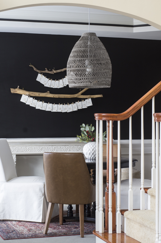 We have been keeping up with the Advent Calendar and I love it against the black walls.