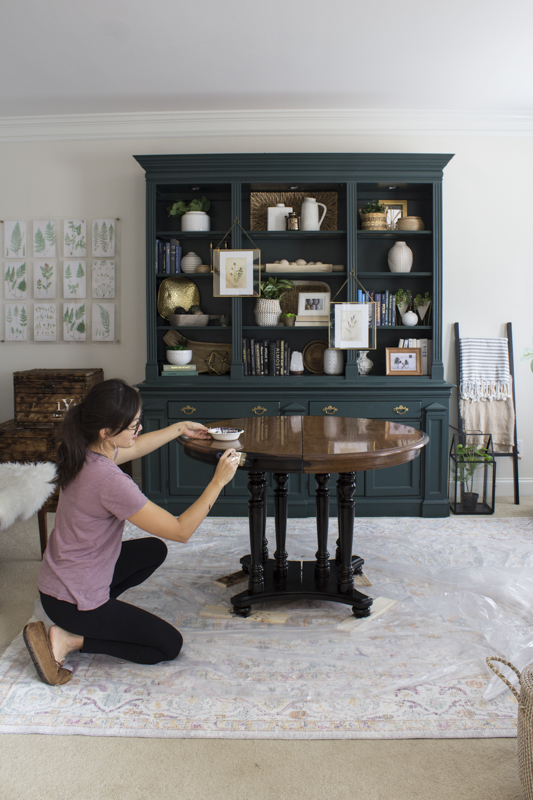First of all, I didn’t want to spend much money on updating this space. Our dining room is on the smaller scale and we had a huge dining room table that I had bought from my friend a while back. I had to completely restore and update it as it was in pretty bad condition. We loved the dining set but it was honestly too big for the room and this area doesn’t get used all that much. Jimmy and I dropped off our dining set at my parent’s home and my mom was happy to have a little change in her space as well.