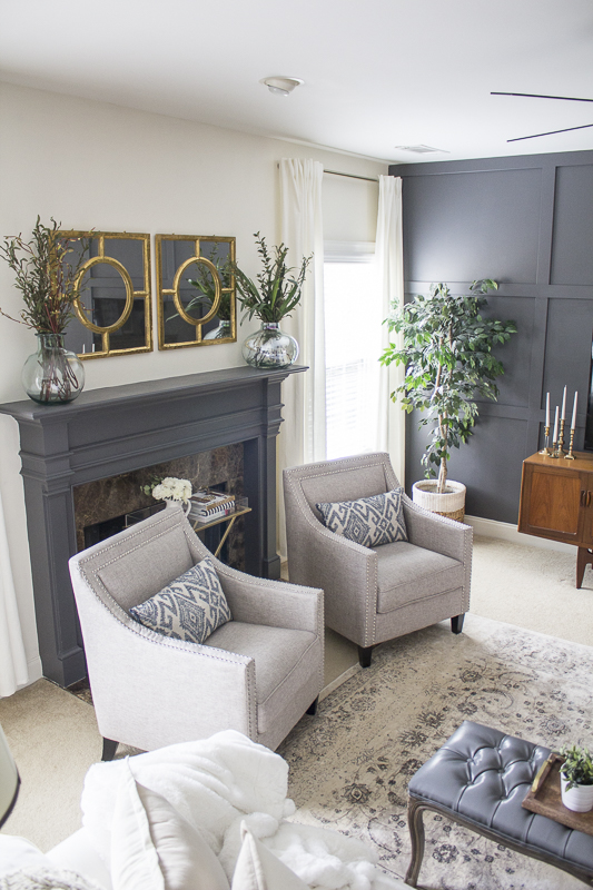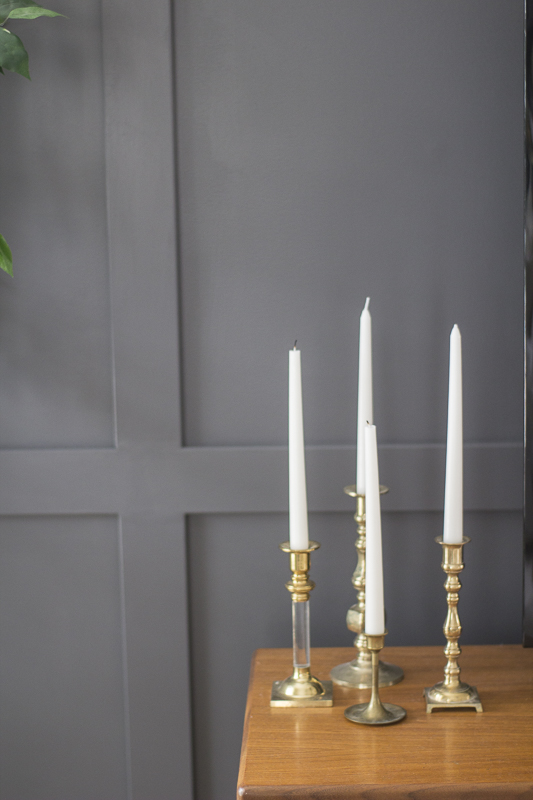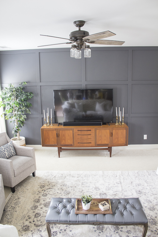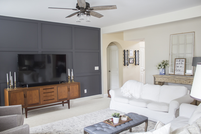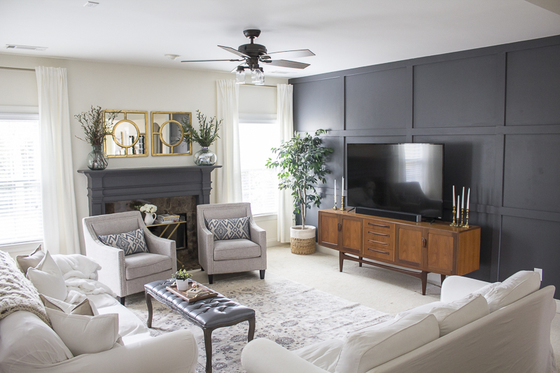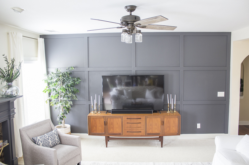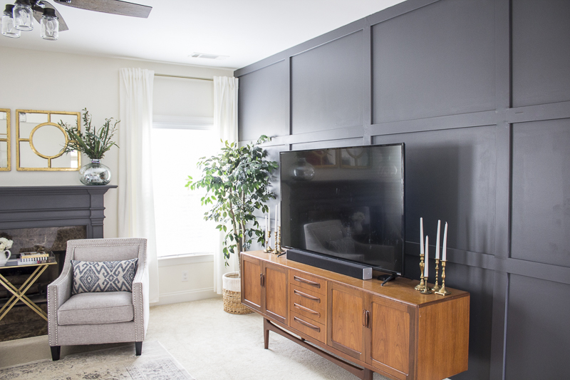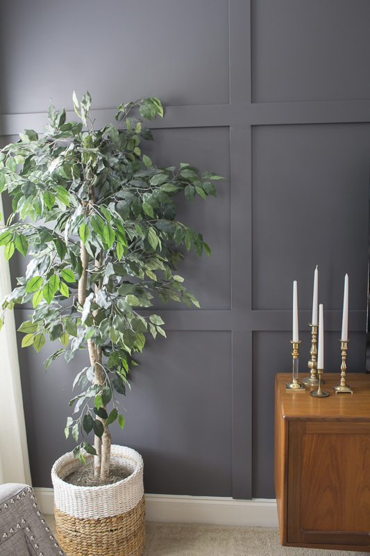 Hope you enjoyed the new space. We love the paneled wall so much and the room actually feels larger and brighter during the day even with the dark wall. You can still find the tutorial over at Home Depot for the paneled wall. Lmk if you have any questions and have a wonderful day!