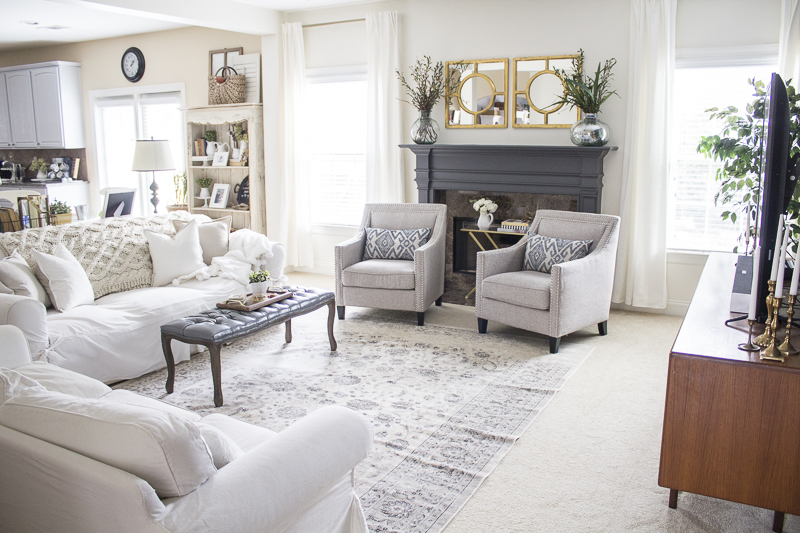 I’ve been receiving a lot of questions regarding our slip covered couches so I’ll share a post on that soon. And I had to share this bottom picture because I didn’t realize there were wipes on the console table. I decided to leave it because that’s real life!