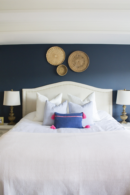 It ties in with the pink and navy going on in the rug. It’s such a fun color combo.