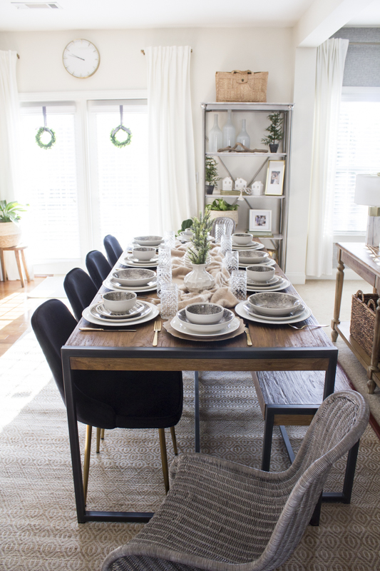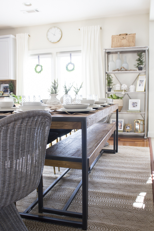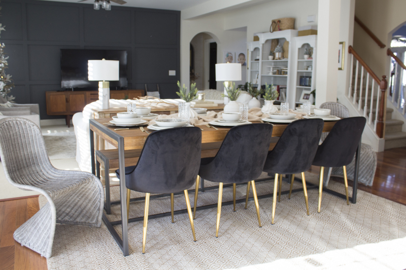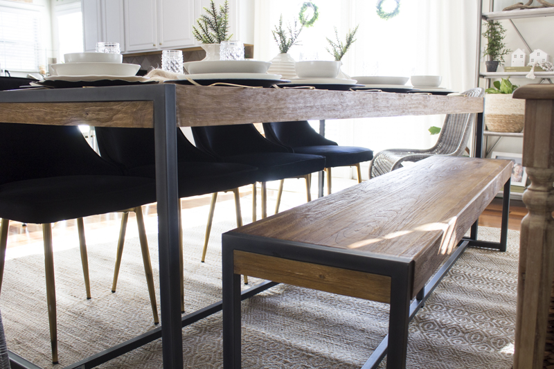 I started off with the design by thinking about what I wanted for this space. Our previous table was a garage sale find and fit 6 people. That table is now moved into my office. I knew I wanted a larger table since the space could accommodate it. Design wise, I also really desired to combine some styles together to keep it interesting but still casual. We have 3 kids and we also have foster children that come in and out of our home so I had to look for products that fit my aesthetic but could handle messes, dings and stains. We also have 3 nephews who live next door so understandably, it had to withstand a LOT of use.