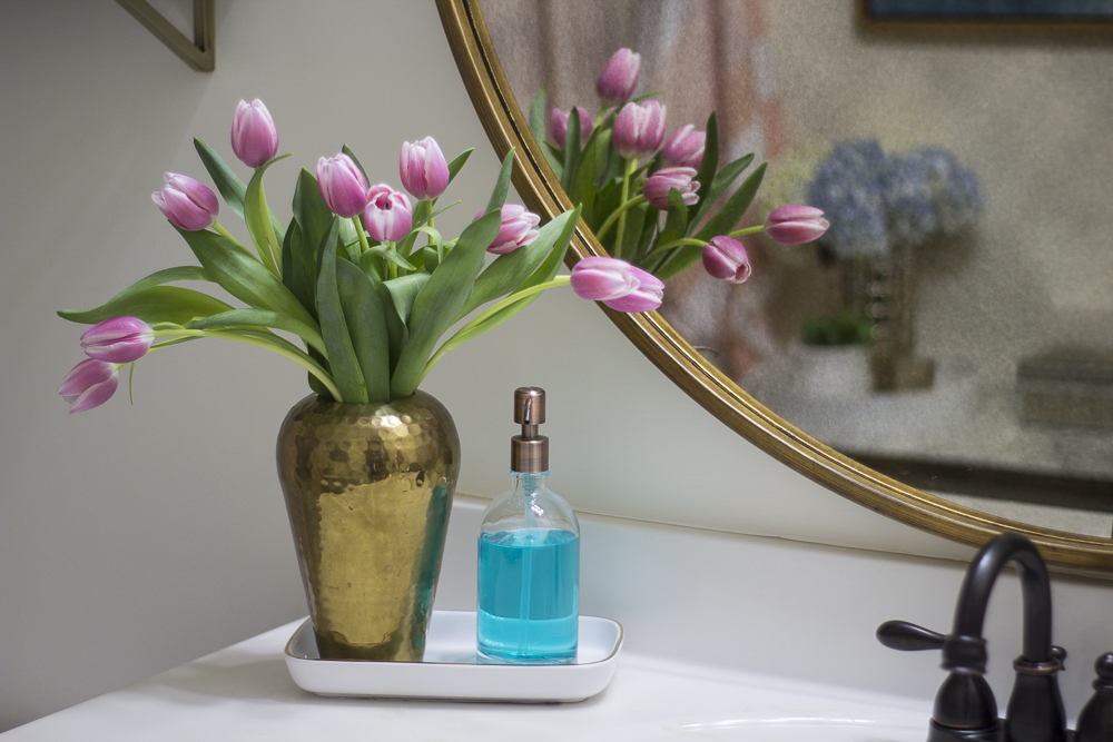 I can’t believe this is the same bathroom, Yuni! You did a fabulous job and the details all just perfect! I especially love the round mirror and the way you’re using the console table! So gorgeous all around!