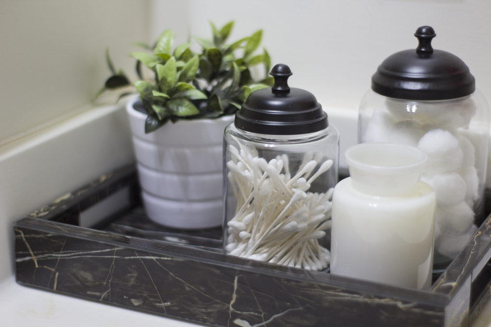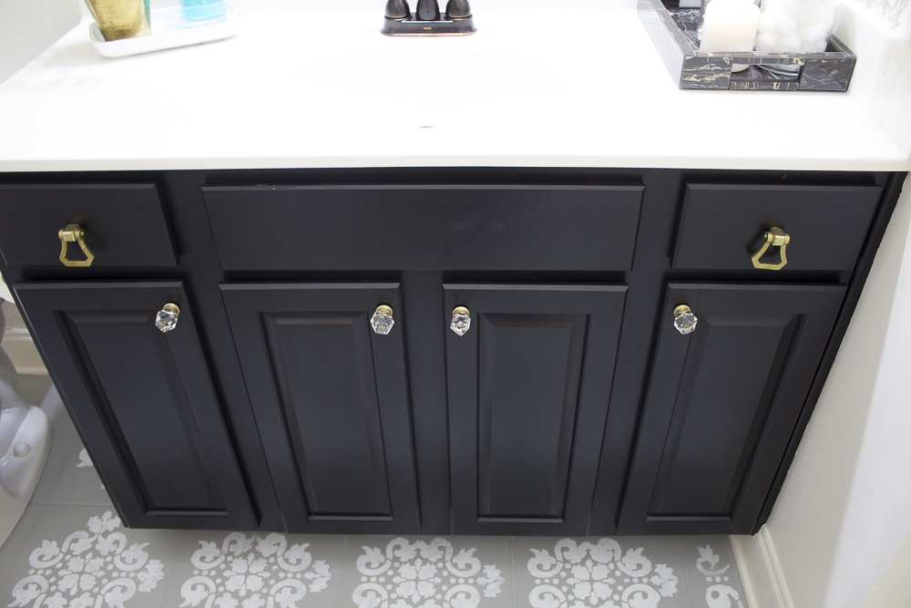 Simply painting the vanity black and changing the knobs made a dramatic difference alone.