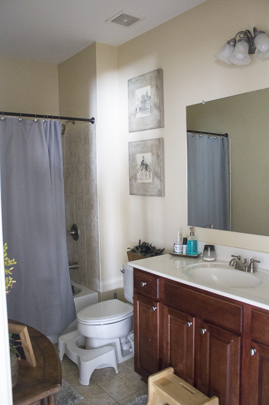 Just in case you don’t remember what my bathroom used to look it, here are a couple of BEFORE pics. It was a standard builder grade bathroom with little personality. With each One Room Challenge, I try to further my design skills by going beyond my comfort zone.
