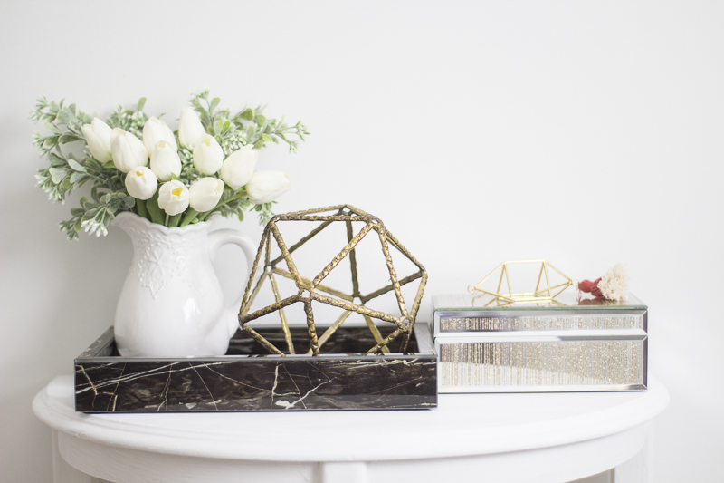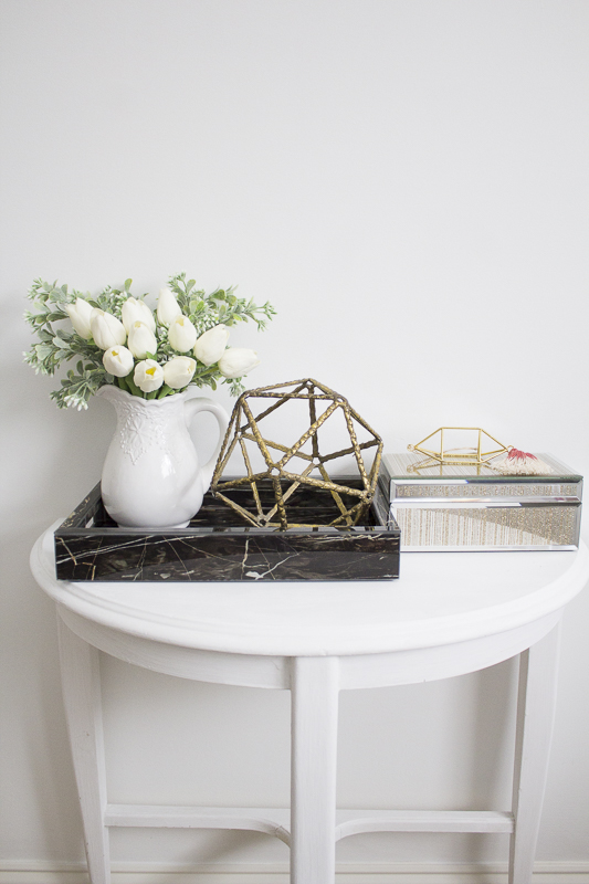 Just now catching up on the previous weeks, and I have to say I love how you’re mixing vintage pieces with more modern ones. That, to me, is the perfect way to style any room, when you’ve got gorgeous pieces like the traditional vanity juxtaposed against more modern ones like the brass hardware, geometric ball and marble tray. Cannot wait for next week!