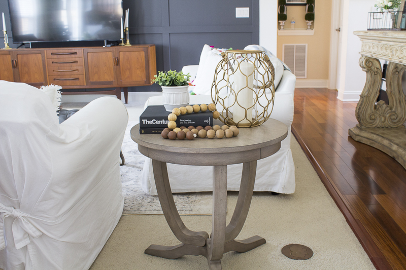 This past week, I received some more goodies from my sponsor, Lamps Plus like this gorgeous wooden pedestal table and candle holder. For some reason, I miscalculated the measurement of this table as I was planning on placing it next to the bathtub. It’s actually much bigger than I thought and so it’s currently living in my family room. I have to say, it’s pretty perfect in this space.