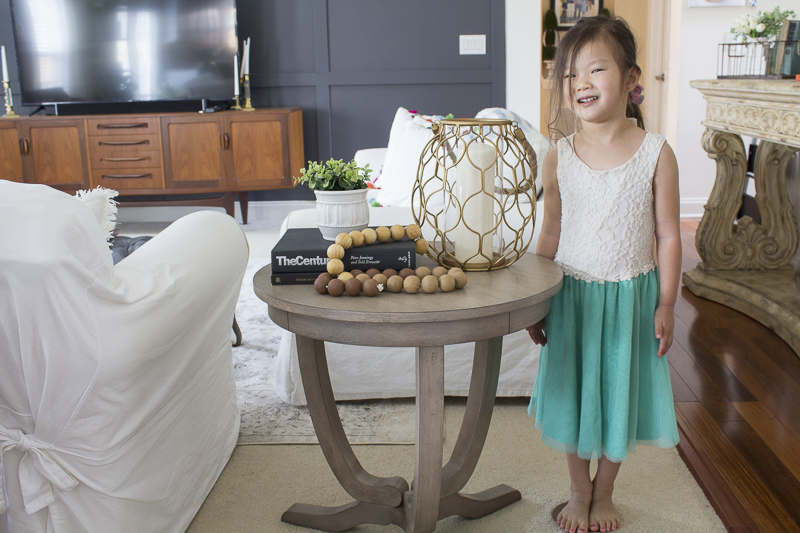 Every single time I photograph any decor and my little Emmy is around, she makes sure to get in a number of shots. Here she is in her favorite dress and messy hair. I love this crazy little girl.
