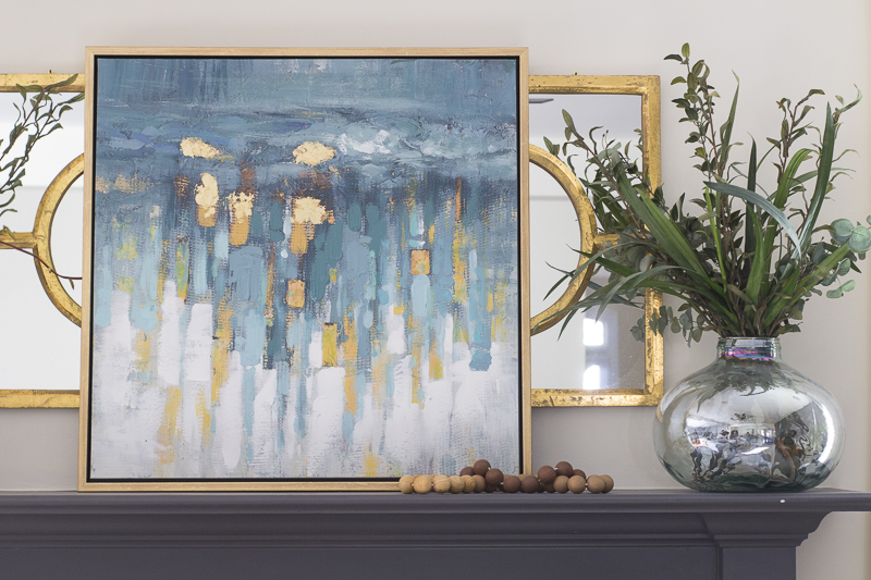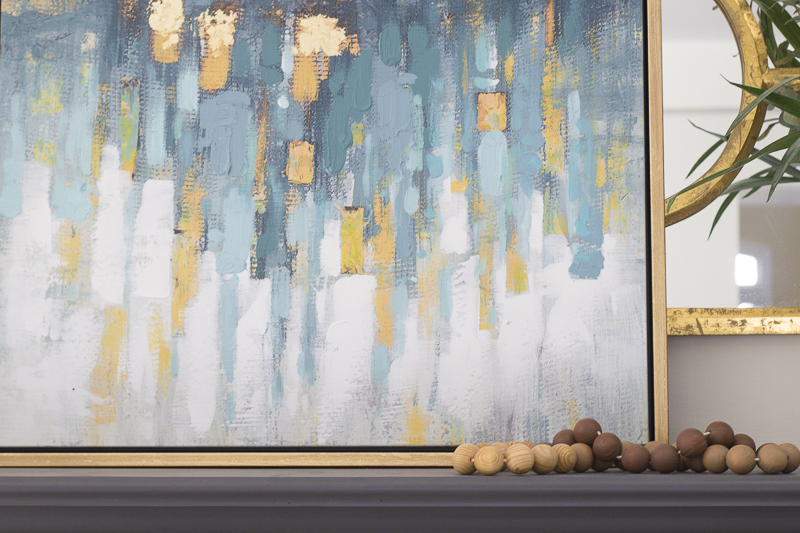 Okay, I’m officially obsessed with everything and am seriously considering painting our wood double vanity in the master bathroom black! That hardware alone is so amazing, I could stare at it for days. And, of course, you and your tile painting skills – I can’t get over how creative you are! Oh, and can’t forget about that gorgeous art! I’m usually so OCD about abstract art and patterns in general (total weirdo, I know), but that gorgeous mix of blues and golds is just too perfect!
