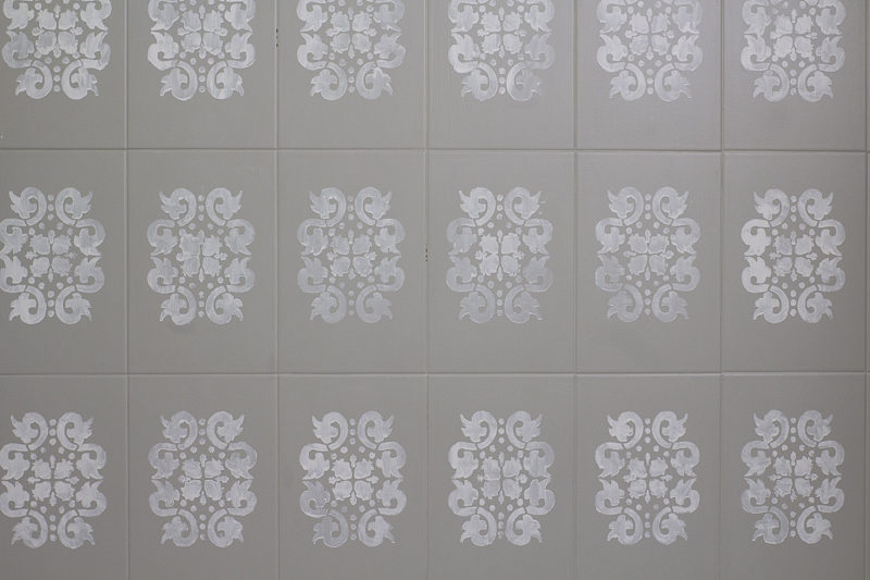 Last week, I shared about how I hit a DIY bump when I started to regret painting the tiles. Well, I’m happy to say that it’s actually turning out much better than when I began. Here’s a sneak peek! Remember last week when my guest saw me paint the tiles and started panicking? Well this week, they were relieved to see it looking much different than last week.