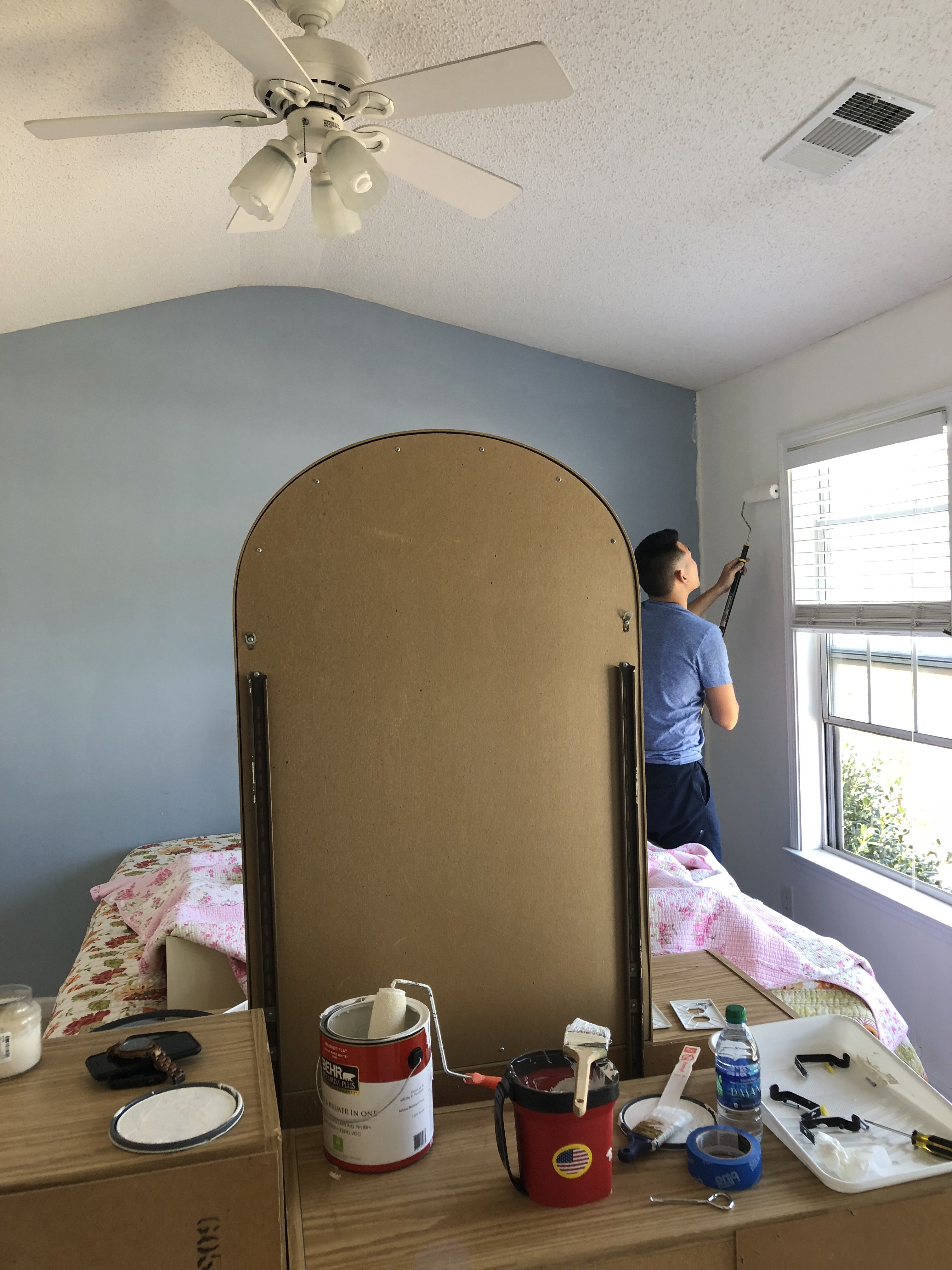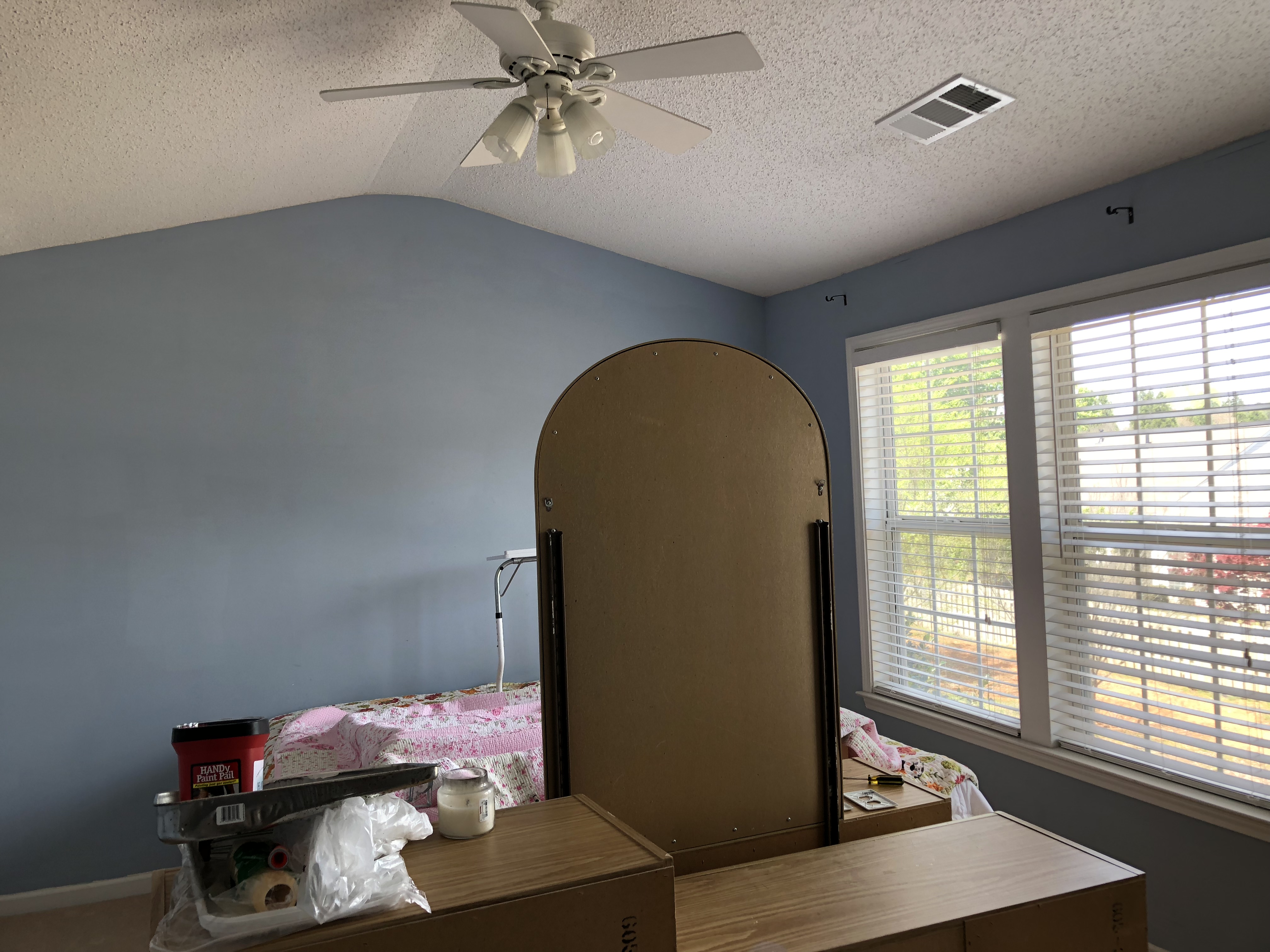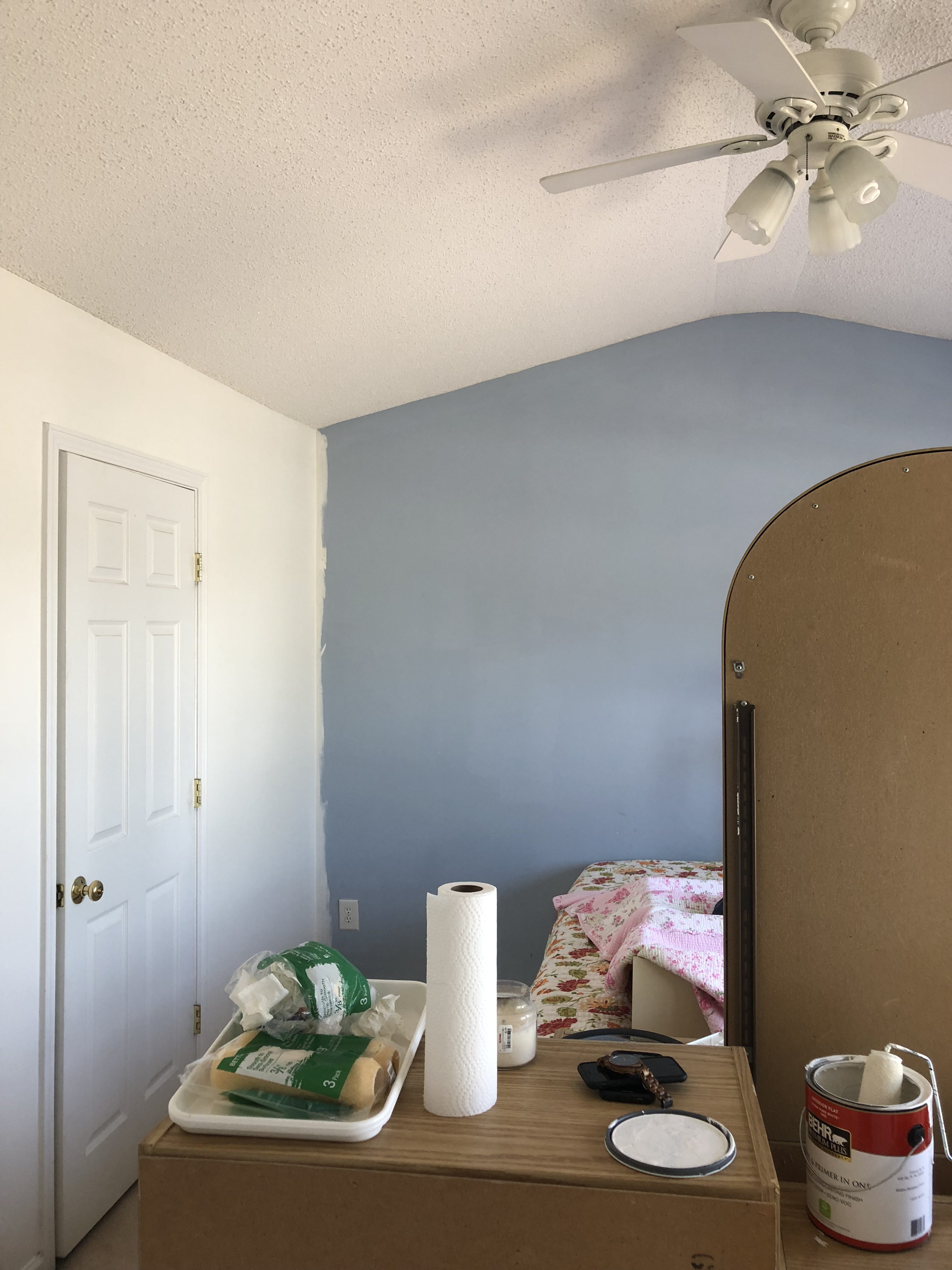 Just painting my mom’s walls made the room feel so much brighter. Bye bye baby blue walls! I’m not sure if I can get anything done this week because I’m still waiting for the wallpaper to arrive. I can’t wait till that is installed! I also need to find and order a dresser and find some good lamps and nightstands.