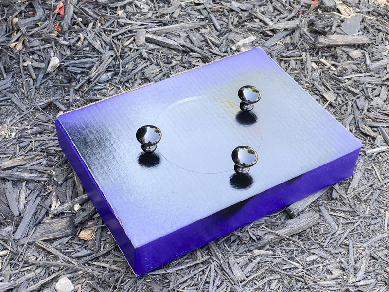 The box was perfect to hold my knobs for a quick spray painting job. I poke holes so that the screw goes through the cardboard and sits flush.