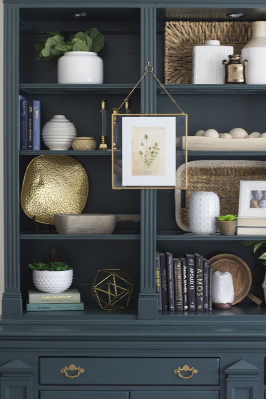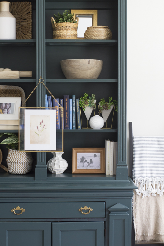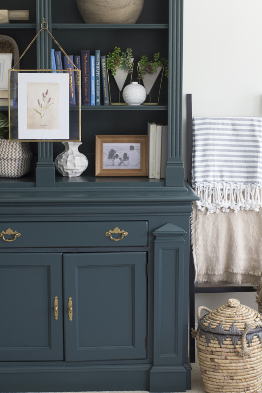 The paint has done a wonderful job making it look new again. Paint usually takes a few weeks to completely cure but I will be styling it before since the shelves are mostly glass inserts. I’m just so happy it covers all the scratches and dings. The outside was in pretty poor shape and the satin sheen of the paint really brought it back to life.