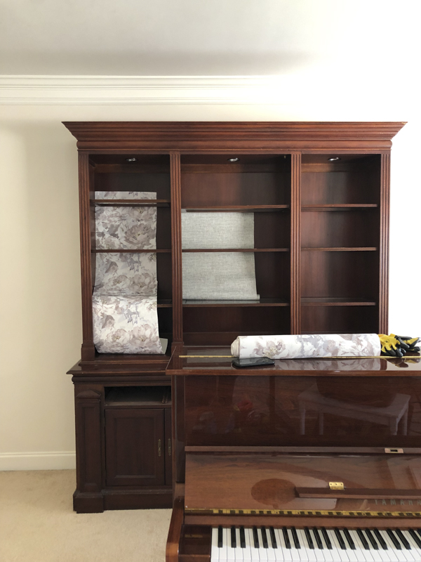 I even thought about just wallpapering the back and leaving it. I didn’t love that option. I also planned on painting it a glossy black. Again, I didn’t love that option either.