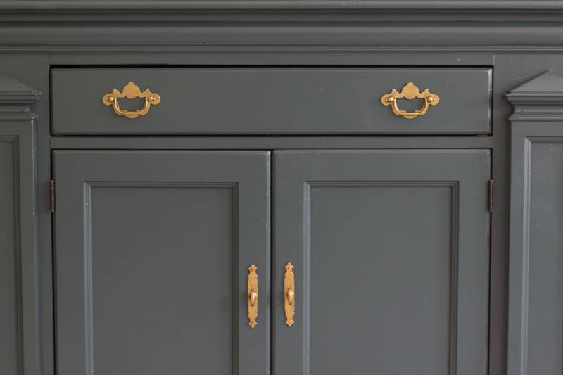 I used gold leaf rub n buff for the hardware. I would eventually like to change these out but for now, these will do. I didn’t want to spend any money on this project. The gold looks so so good against this moody green.