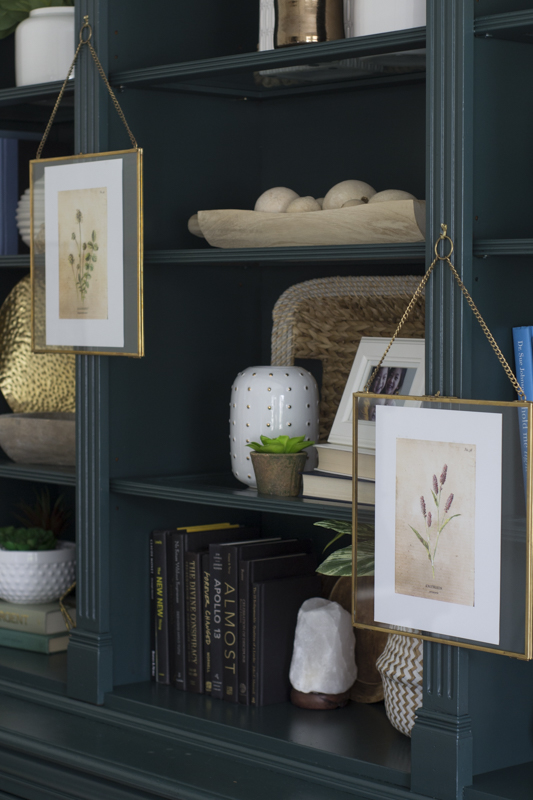 I printed some free vintage botanicals from here and I hung them up in these glass frames. I love the added dimension.