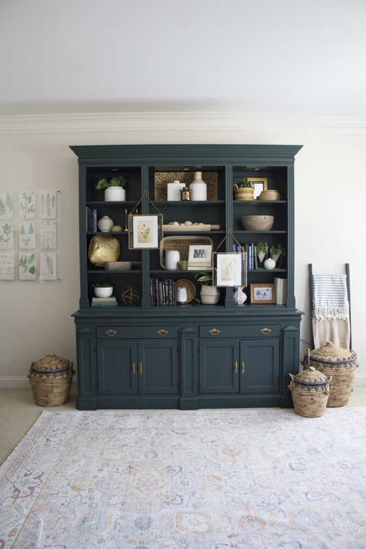 All that to say, I’m super happy with the results. The paint looks absolutely beautiful and it has completely given it a fresh, modernized update to it’s once traditional appearance. This bookshelf probably weighs at least 800 lbs and I’m not even kidding. Taking it out to the garage for sanding and painting was not an option. The only way it even got in here was when we hired movers to bring it in 7 years ago when we purchased our home. I doubt it will ever leave this room.
