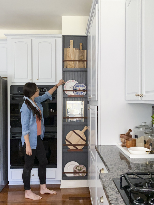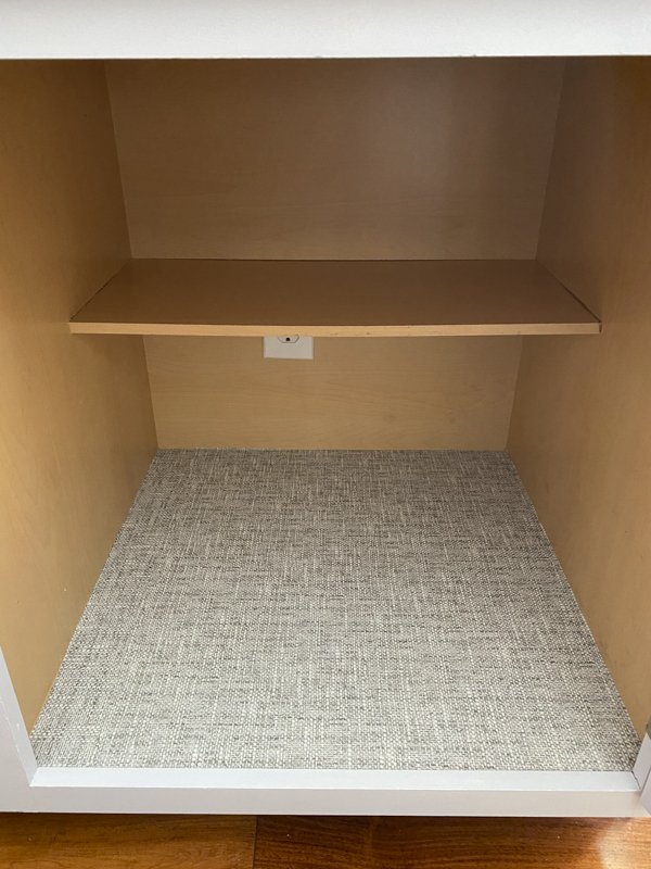 I used this gray poplin peel and stick wallpaper and I highly recommend it. It’s the same brand that I used for so many other areas of my home. This particular texture is so easy to work with since there’s no pattern. Here is another post where I used it to line the back of my bookshelves.
