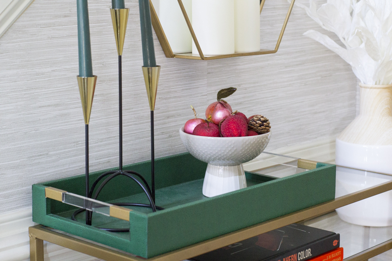 I’m all about mixing traditional and modern elements and the jeweled ornaments bring in a nice update from typical glass ornament balls. My in laws used to own a home decor importing business so all of these special ornaments came from their business years ago.