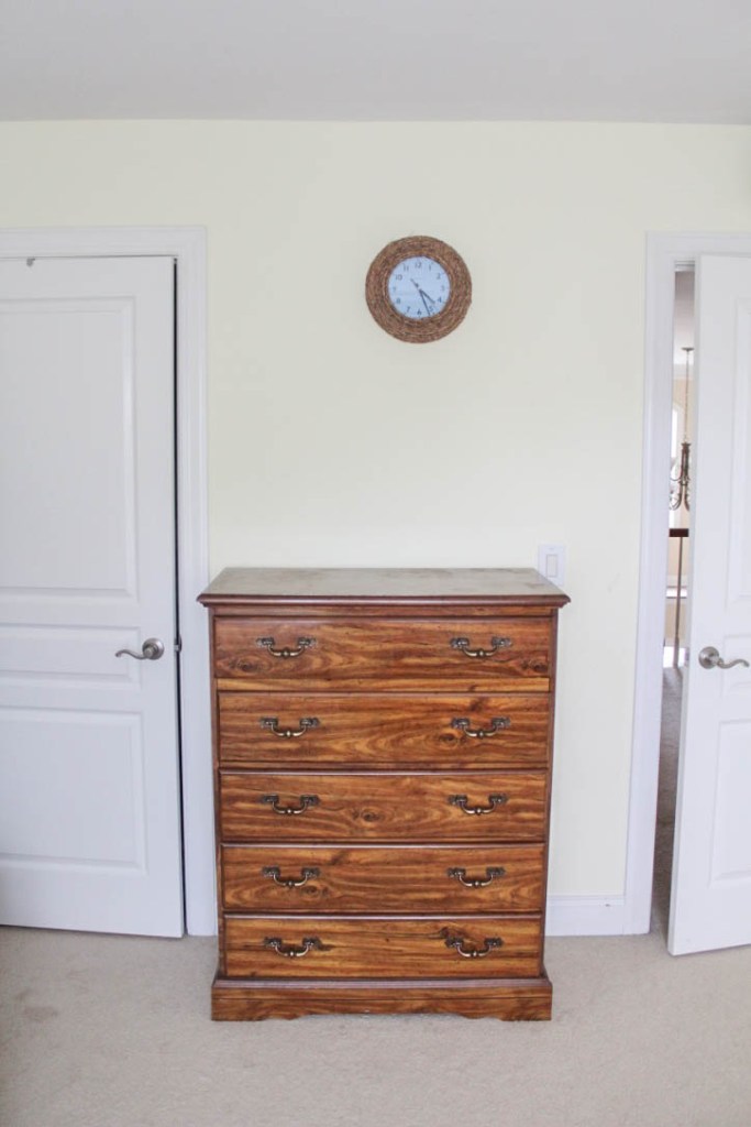 Here’s what the original dresser looked like. This was an old dresser that Jimmy grew up with so it’s over 40 years old! It’s made of solid wood so the quality is still pretty good. That’s what I love about old furniture. The construction is usually pretty solid and can last forever.