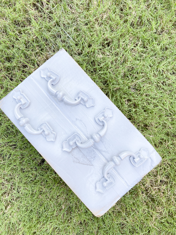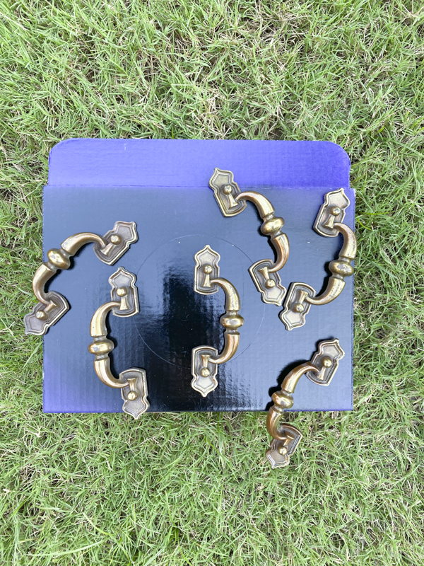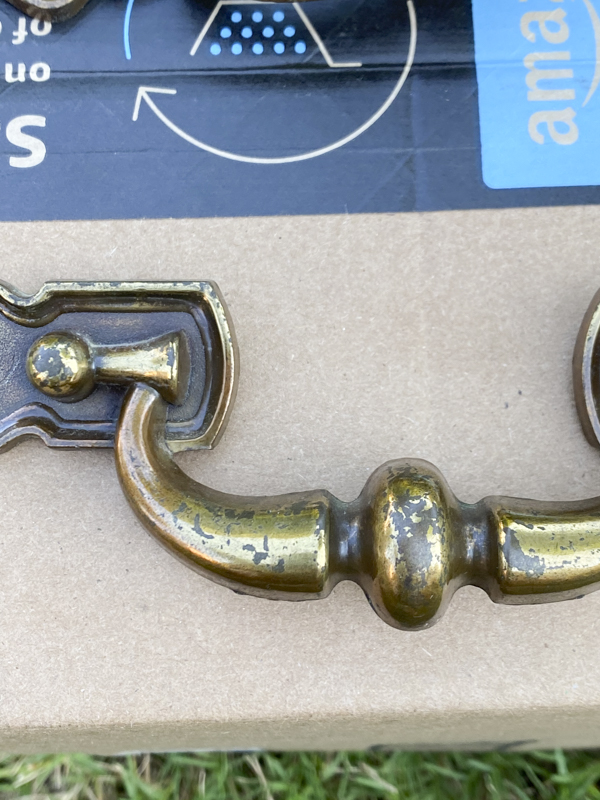 Remember this dresser is over 40 years old! The hardware had a good bit of tarnish on it but it’s nothing a little paint can’t fix.