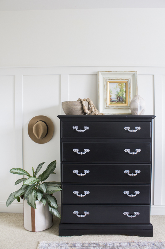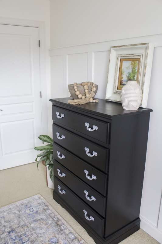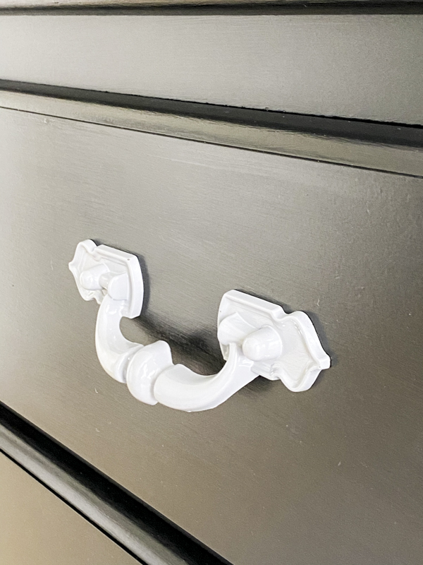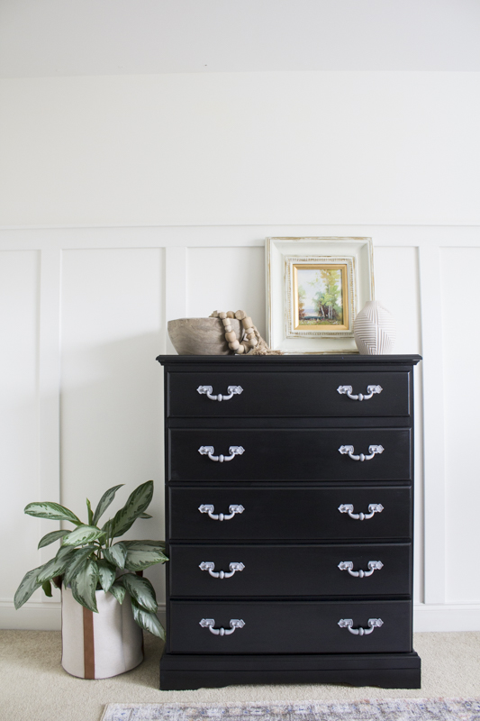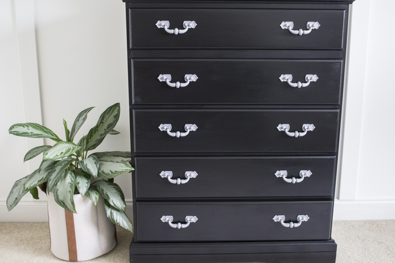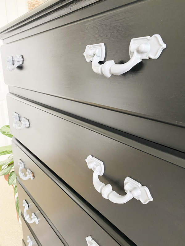 After two coats of “Colonial Black” paint from Curb Appeal, she looked good as new! The glossy finish looked so clean and chic. I would also recommend applying a few coats of Poly Acrylic for extra protection. I will probably do this if I end up keeping the dresser. I’m thinking about selling it since I don’t really have any place to put it.