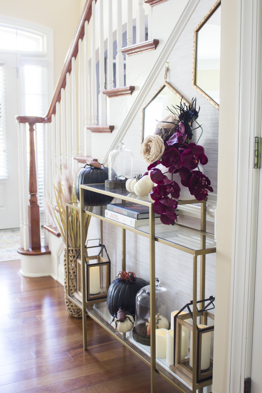 I’m excited to share this area in our home as it’s the first area you see when you come inside. For the longest time, I’ve wanted to do something with my foyer. It’s a narrow area and since it sits right under the staircase, there isn’t much wall space. It has gone through some changes in the past but I finally had the chance to give it a nice little makeover with the help of Joann to create a stylish and spooky new foyer.