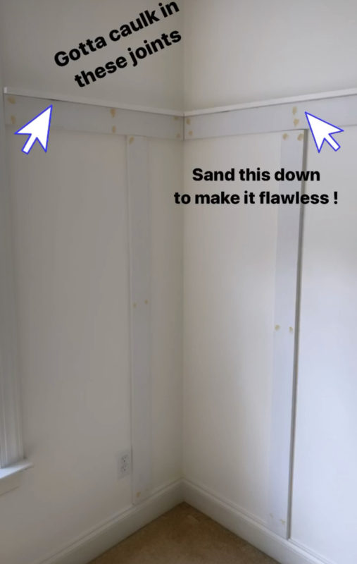 I caulked the joints to create a seamless look and then I painted the boards the same color as the walls which was Alabaster by Sherwin Williams.