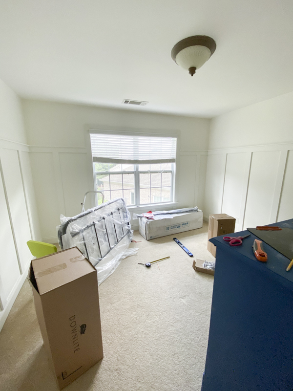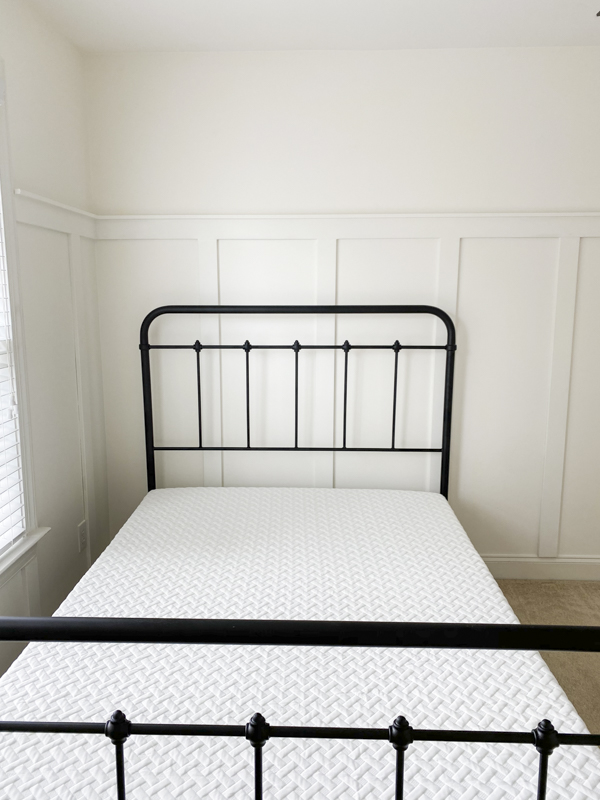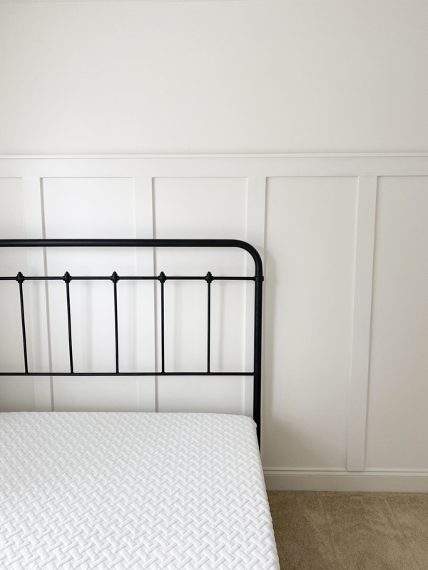 We also put the new bed together from Home Depot. The cool plush gel mattress is also from Home Depot. Unfortunately, I ordered the wrong size box spring so I’m just waiting on that to arrive at the end of the week. Doesn’t it look so good against the board and batten wall?
